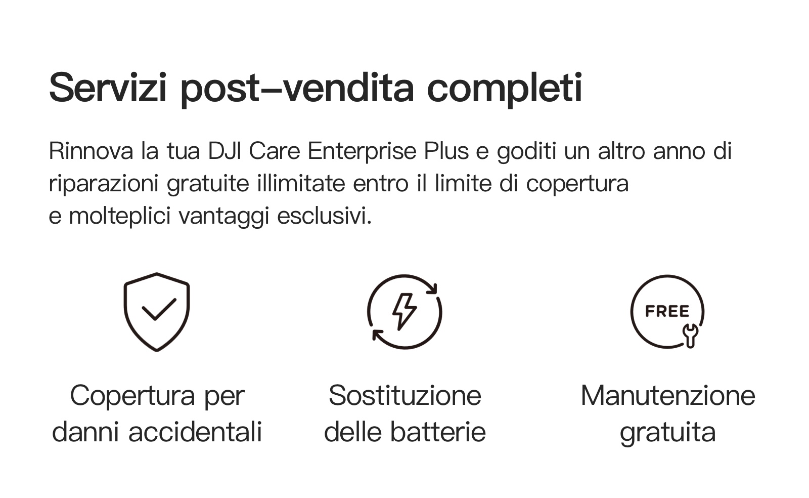 Rinnova la tua DJI Care Enterprise Plus e goditi un altro anno di riparazioni gratuite illimitate entro il limite di copertura, una garanzia ufficiale
